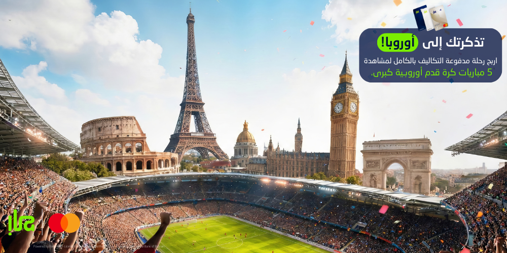 شارك بنك "إلى" اهتماماتك وشغفك، لا مجرد مشترياتك. استخدم بطاقتك الائتمانية الجديدة لمرة واحدة قبل نهاية العام، وقد تكون الفائز بتجربة كروية حية تشمل حضور خمس مباريات دولية لفريقك المفضل في ملاعب أوروبا.