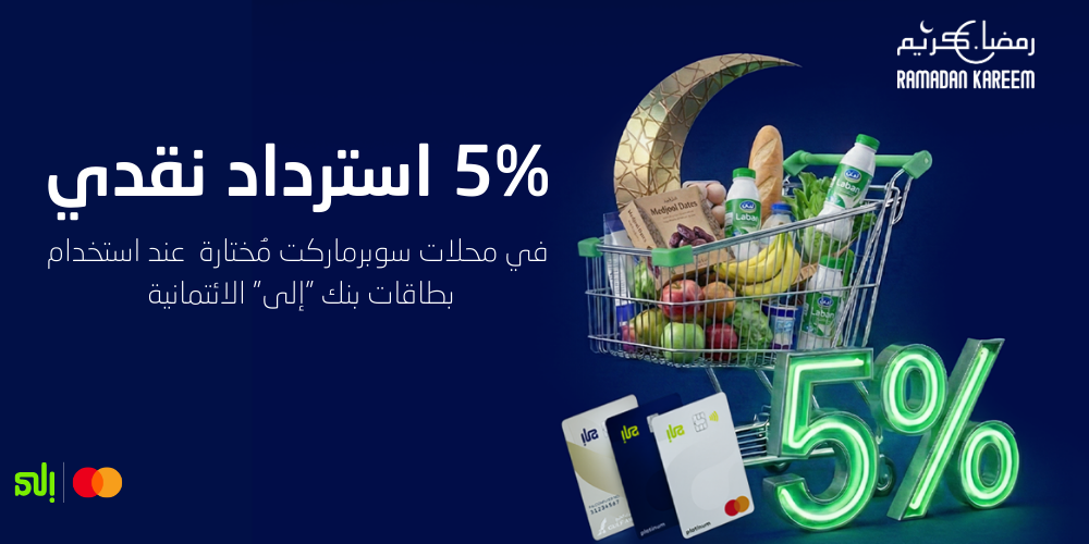 المنامة، البحرين: أعلن بنك "إلى"، البنك الرقمي الرائد في مملكة البحرين والمتوفر حصريًا عبر الهواتف الذكية، والتابع لبنك ABC ، عن إطلاق حملة خاصة بمناسبة شهر رمضان المبارك، تتيح للعملاء الحصول على استرداد نقدي بنسبة 5% على مشتريات المستلزمات الغذائية من الأسواق والمحلات التجارية المختارة، دعمًا لاحتياجاتهم اليومية خلال الشهر الفضيل.